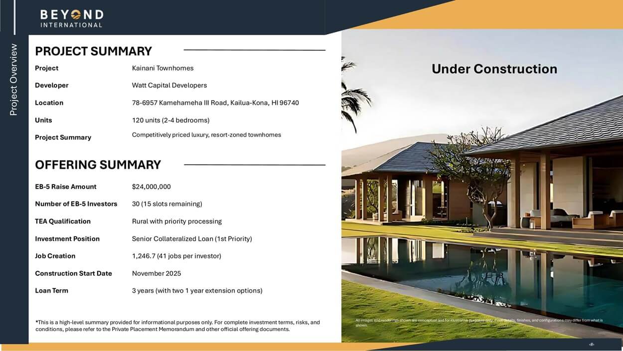Beyond Paradise 1是一个已获I-956F批准的乡村EB-5项目,位于USCIS最快的审批队列中。以下是该项目的核心要素概述。
